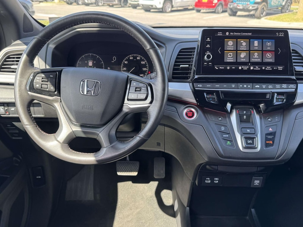 Includes 7 speakers including subwoofer, 9" color touchscreen display, 7" TFT Meter, Bluetooth HandsFreeLink, Bluetooth streaming audio, HondaLink, Speed-Sensitive Volume Compensation (SVC), Radio Data System (RDS), wireless Apple CarPlay compatibility, wireless Android Auto compatibility, 2.5-amp USB smartphone/audio interface, CabinTalk in-car PA system, illuminated steering wheel-mounted controls and fin-type roof-mounted antenna. All SiriusXM services require a subscription, sold separately by SiriusXM after the trial period. If you decide to continue service, the plan you choose will automatically renew at the then-current rates. Fees and taxes apply. See the SiriusXM customer agreement and privacy policy at www.siriusxm.com for full terms and how to cancel, which includes calling 1-866-635-2349. Available in the 48 contiguous U.S. and D.C. Some services and features are subject to device capabilities and location restrictions. All fees, content and features are subject to change. SiriusXM, Pandora and all related logos are trademarks of Sirius XM Radio Inc. and its respective subsidiaries.