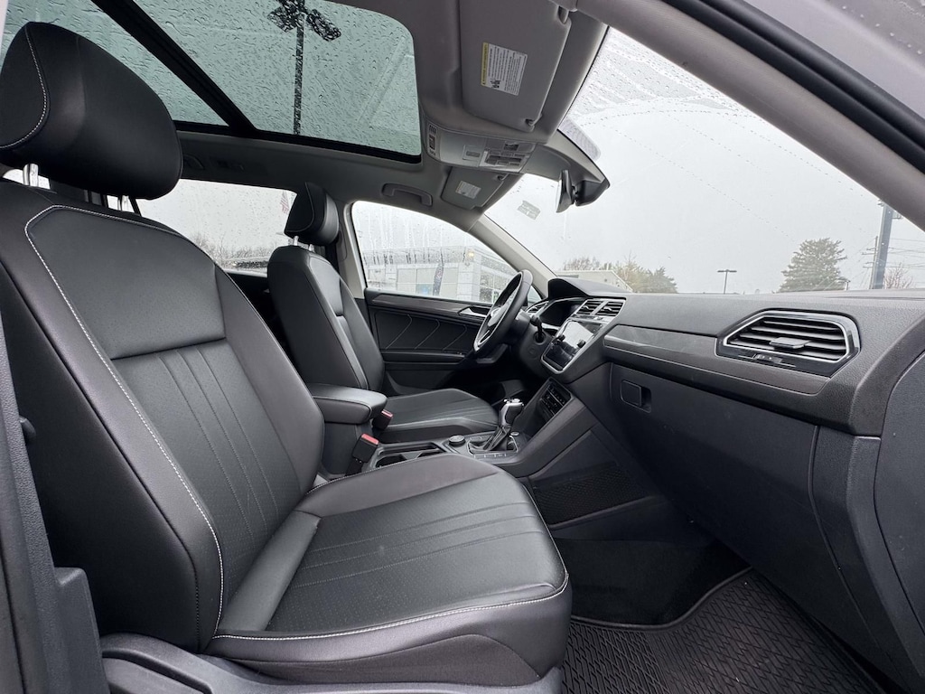 Step inside the Tiguan and experience the refined interior, featuring premium V-Tex leatherette seating surfaces and heated front comfort seats. The spacious cabin and versatile cargo area provide ample room for passengers and their belongings, while the intuitive infotainment system and advanced safety features keep you connected and protected.